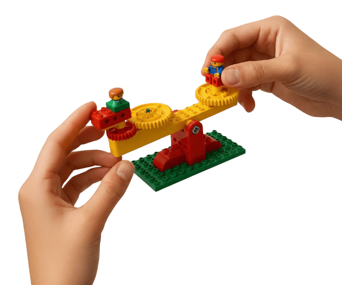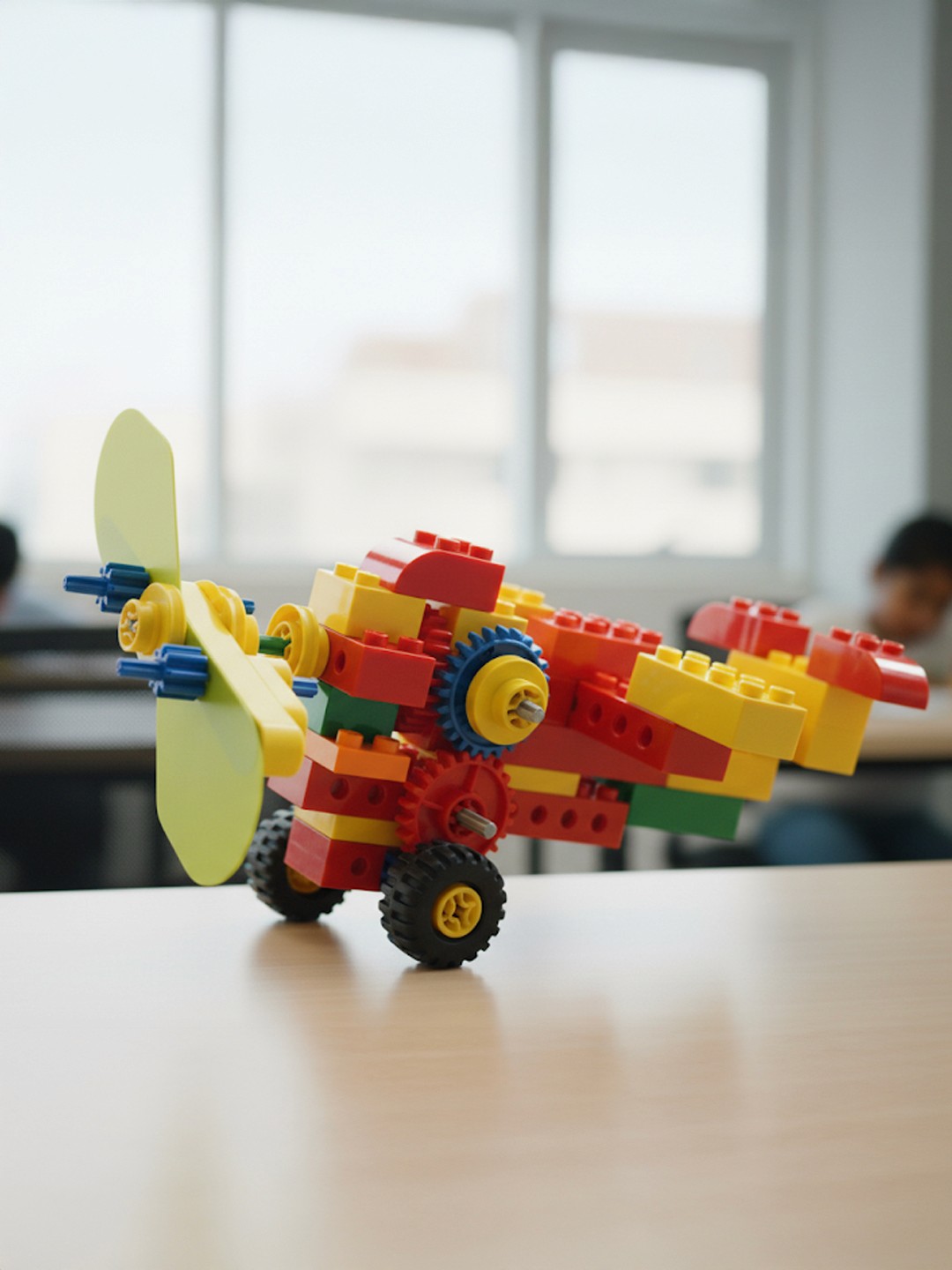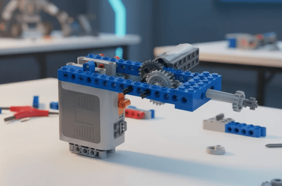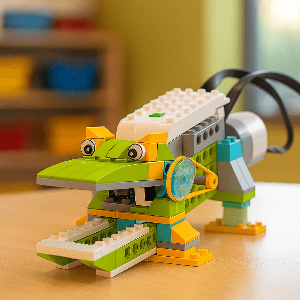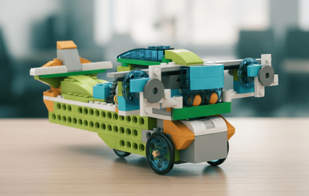 A playful STEM course at OMOTEC where young creators bring their ideas to life using colorful DUPLO bricks and simple motorized parts.