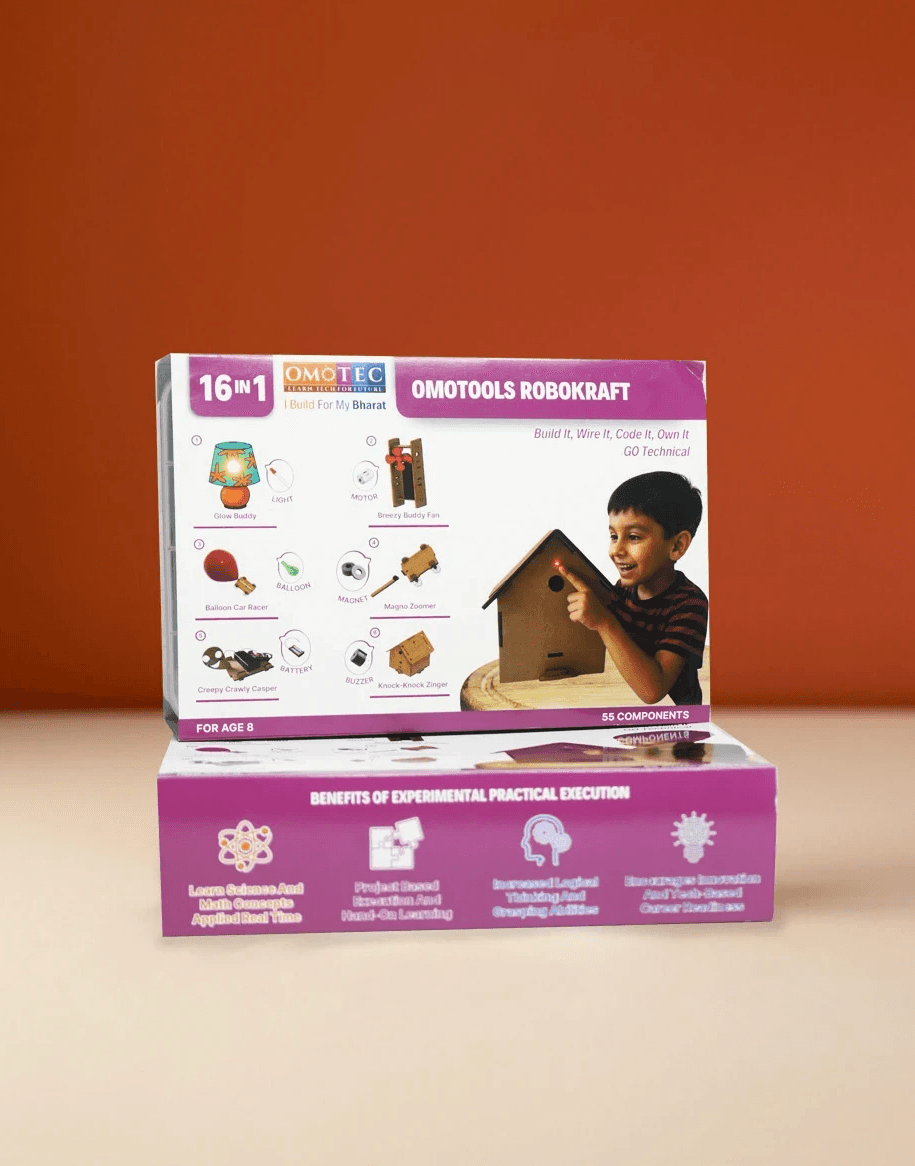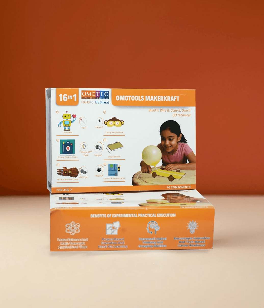 A playful, hands-on STEM kit for ages 7+. With over 70 components and 16 build-it-yourself projects, the Makerkraft Kit turns everyday kids into mini-makers. They’ll light up LEDs, power buzzers, launch rockets and even build moving bots—all while learning real electronics safely.