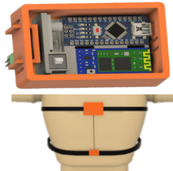 The product aims to detect early stress and anxiety by measuring breathing patterns as a vital sign. It uses two 3D-printed box-like structures fitted with FSR sensors to measure chest and belly expansion in a non-invasive way. The wireless device connects to a computer via Bluetooth and sends data serially. A Python program collects the data and generates an A4-size infographic report on breathing, including chest and belly breathing patterns, consistency and flow, breathing rate, and the number of deep, shallow, and normal breaths. Testing revealed that the breathing patterns of working professionals in stressful jobs differ from those of school-going children. The device was also tested for gaming activities to assess excitement and stress, which can affect breathing. The product can potentially help control stress and anxiety by monitoring breathing patterns and implementing proper physical practices.